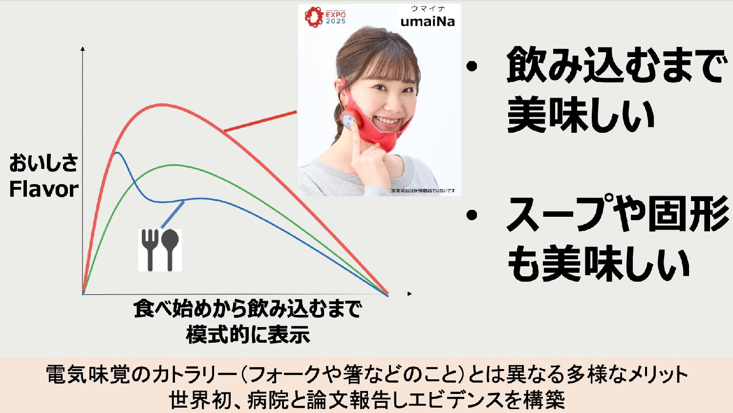 福島先生、大阪万博は大変お疲れ様でした。とても素晴らしい時間をありがとうございました。福島先生は、大阪商工会議所のヘルスケアパビリオンで、この未来の味覚デバイスumaiNaをご紹介されましたが、具体的にはどんな製品ですか?