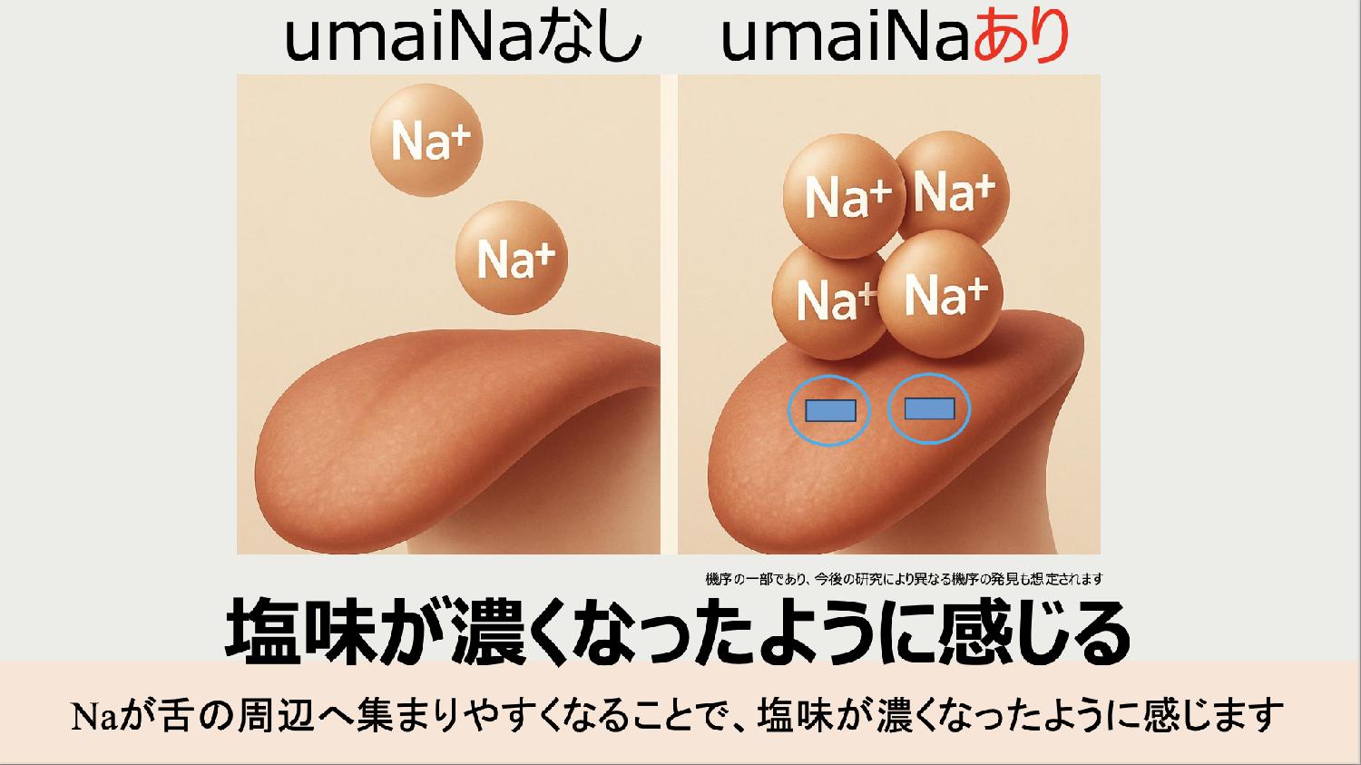 減塩食でもおいしく食べられるようになる製品uamiNaです。食事を豊かにしたい人、腎臓や心臓などに疾患を抱える人の生活に寄り添った商品となる非医療機器デバイスです。
